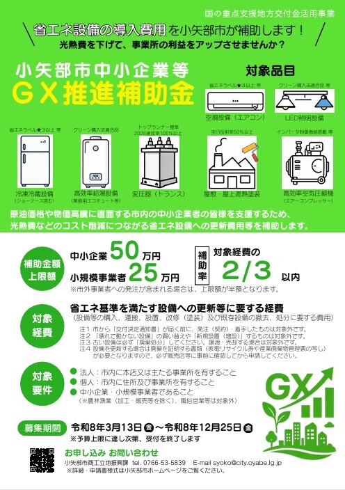 トップページ > 【補助金情報】小矢部市・GX推進補助金の公募について