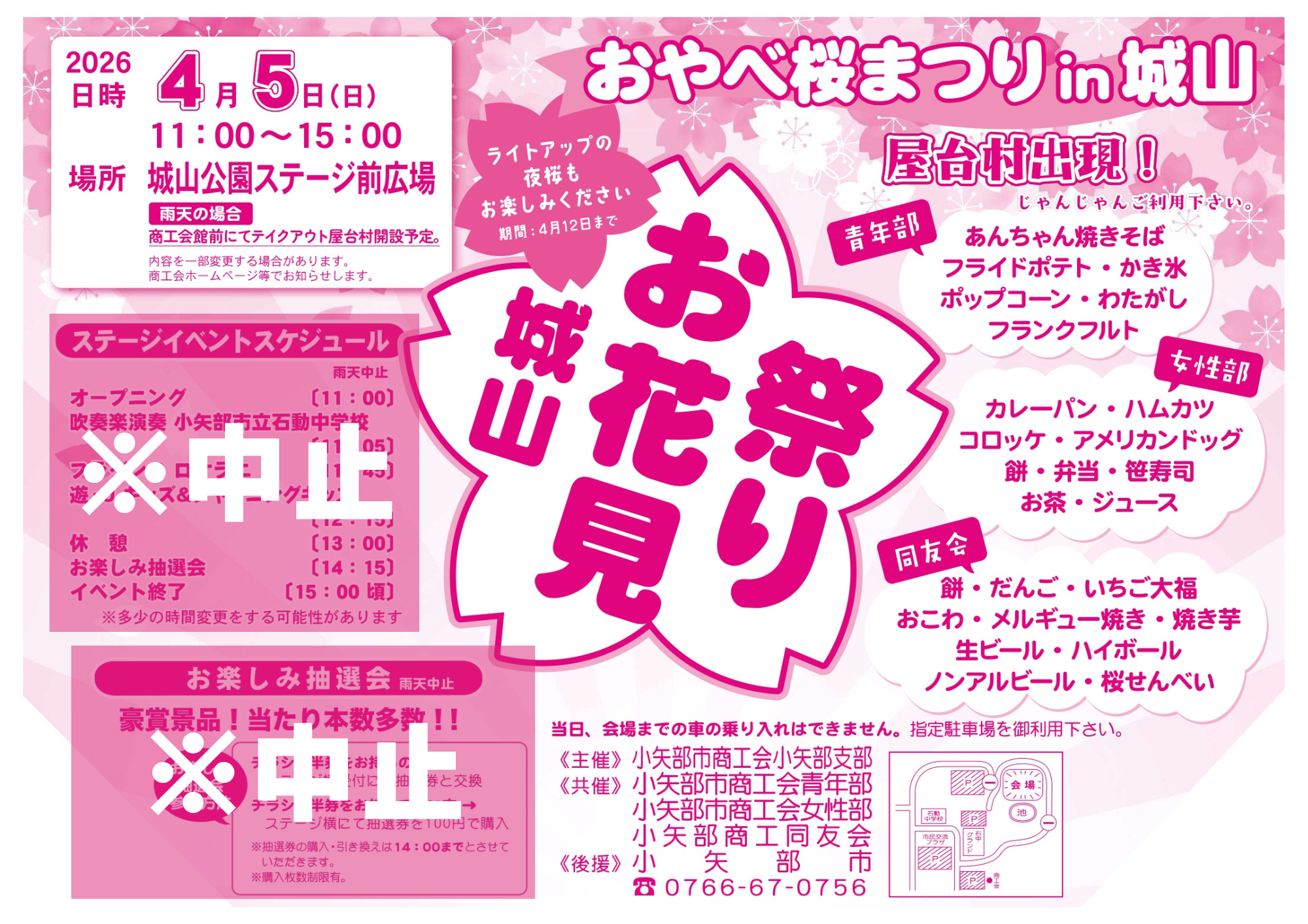■ 4/5 【変更のご案内】おやべ桜まつりin城山 開催内容・会場変更のお知らせ
